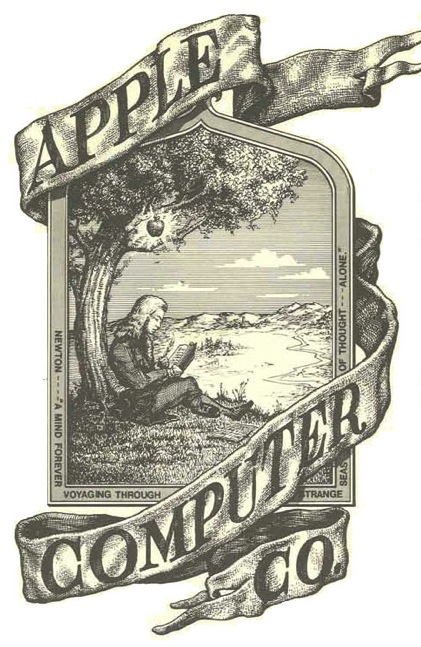 Le premier logo d'Apple : Newton assis sous un pommier (le logo a été abandonné en faveur de la pomme puisqu'il était jugé trop compliqué...)