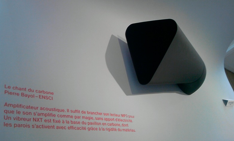 The beauty of carbon is undeniable and this works highlight that ! But they don’t only delight the visitor, they also put the material’s properties under a new perspective : even if a speaker made of carbon is not a must-have object and glasblowers probably have cheaper molds, these applications are worth a thought. When they’re not creating stuff that is intended to be sold, the designers’ role is to find new solutions. This exhibition is an attempt to do just that…