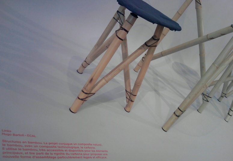 “Links” by the Swiss designer Hugo Bartoli demonstrates how strong the actual carbon fibers are. Assembling bamboo-bars (very in vogue currently, even bikewise!) with very few material shows that carbon fibers have extraordinary elongation-properties (or anisotropic, meaning that the fiber won’t stretch a lot when forced).