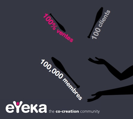 Basée à Paris, cette jeune entreprise du web (eYeka a été créé en 2006) a aussi des bureaux à Singapour et à Londres. La communauté est aujourd’hui composée de plus 100,000 internautes venant de plus de 70 pays dans le monde; eYeka a d’ailleurs annoncé en début de mois un “Triple 100“: