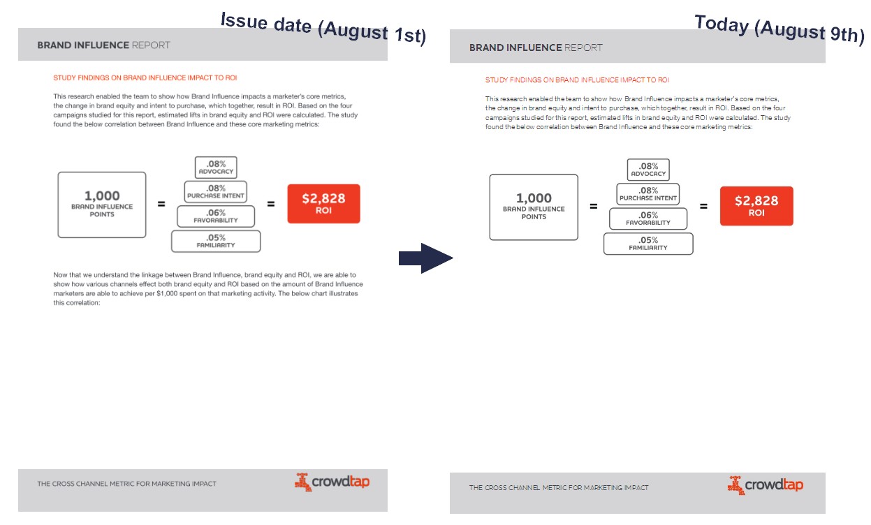 The ROI study we did was just to show the metric in action and was easiest for us to do on Crowdtap. While we did have some big brand equity lifts in the campaigns that were measured, that really has no effect on the actual metric developed, just case studies that utilized it. As more case studies are done and ideally ones outside of our system, we can create a more accurate link between Brand Influence Points and ROI. For the time being, if nothing else, Brand Influence gives a marketer a lot more information about the quality of the marketing they are purchasing instead of just assuming all impressions/reach/GRPs etc is the same.