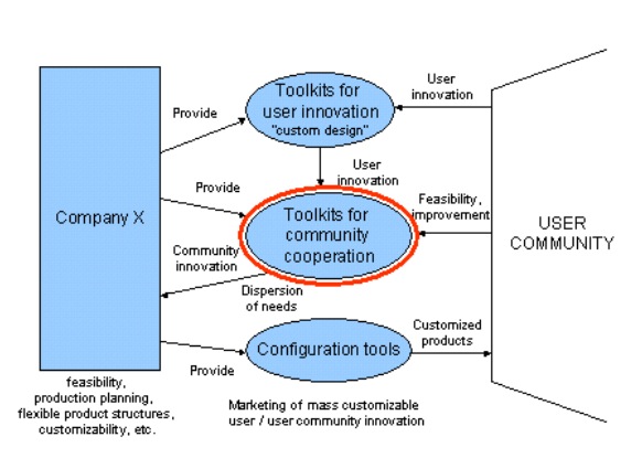 These are some very interesting points Matt! I must admit that I didn’t even think about co-design, probably because I never came across some visual representations of the “co-design process”. I found a definition of it in Ahonen & Antikainen (2007): “While communities of creation address the creation of a new solution space, communities of co-design use an existing one for the purpose of configuration (of a customized product)”, they say. It seems that co-design is linked to mass customization in a way (Piller & al. 2005) don’t you think?