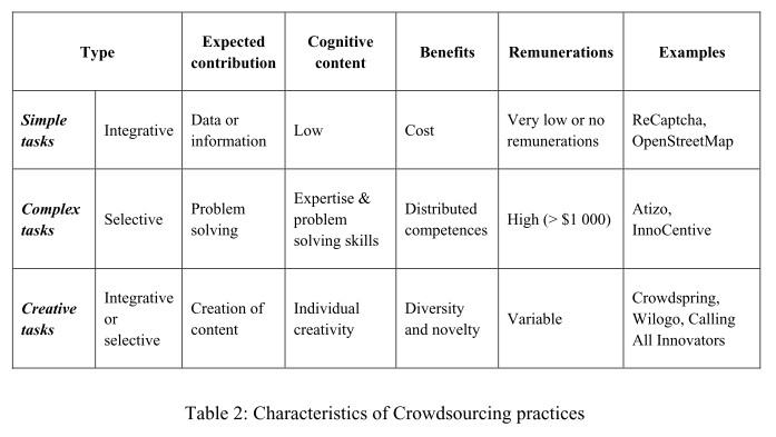 Schenk, E., & Guittard, C. (2010). Towards a characterization of crowdsourcing practices. Journal of Innovation Economics, 7(1), 1-20.