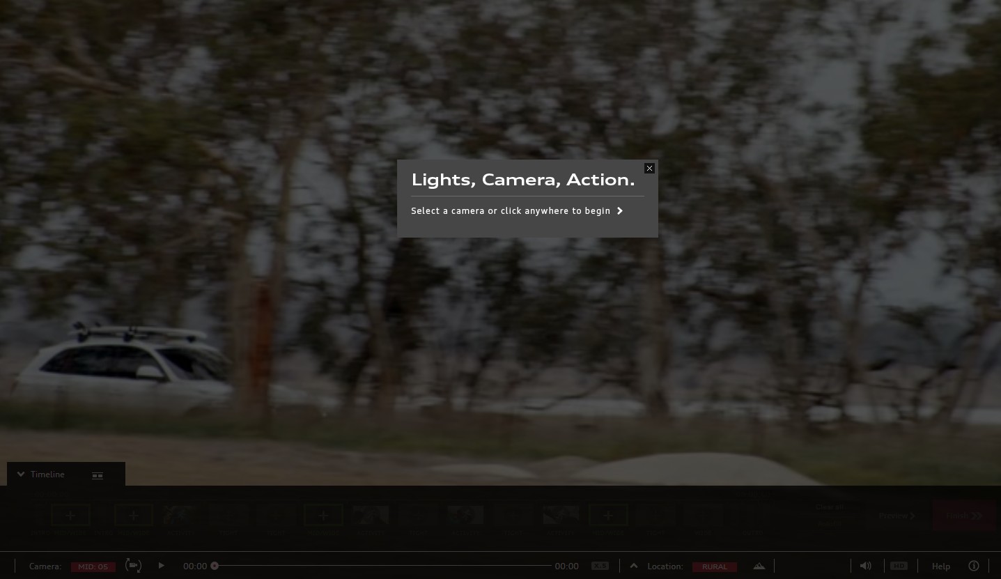 Light, Camera, Action: "Select a camera or click anywhere to begin"