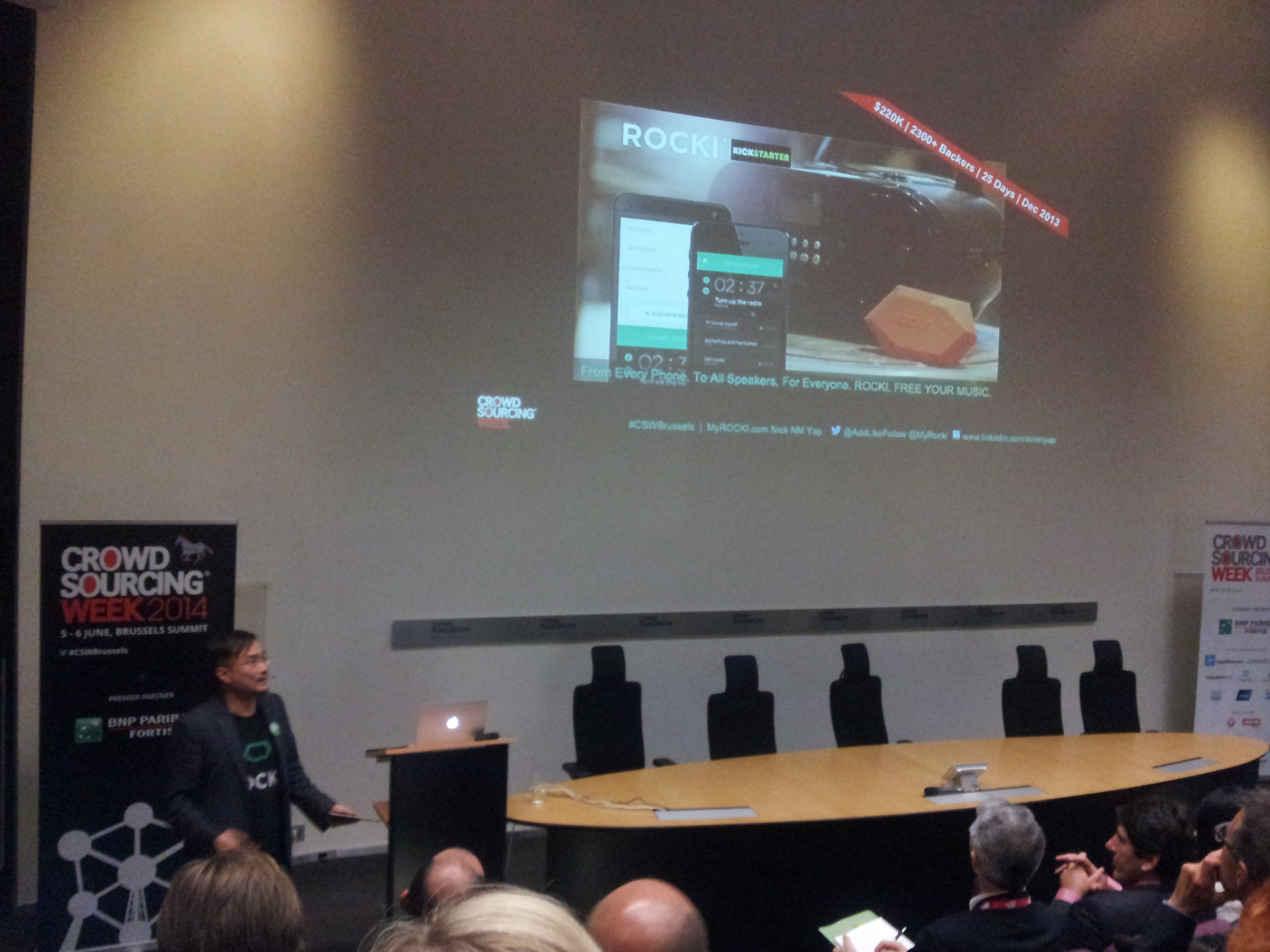 The first practitioner presentation of the morning was that of Nick N.M. Yap, an entrepreneur who founded several companies including Rocki, a device to stream music on conventional unconnected hi-fi systems, for which he successfully turned to the crowd for funding. His talk was about the fact that beyond money, a crowd of funders can also provide fabulous ideas to improve the funded product or expand its functionalities. What you can see above are some of the suggestions he received from backers to improve the Rocki that he initially posted on the platform. I also liked the fact that he underlined the importance of media, communication and PR for the success of crowdfunding campaigns.