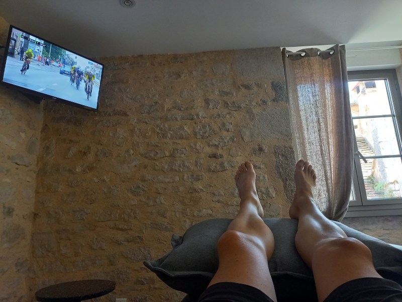 After a very easy 6th stage of my Tour, and lunch with my co-cyclist Klaus, I was supposed to stay in this little cottage, which I reserved on Airbnb (see on Streetview, it’s right when walking up the road, with view on the valley). But the adorable host, Marine, upgraded me to the bigger house on the opposite side of the road, because renovation works were still underway.
