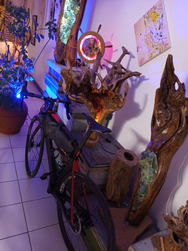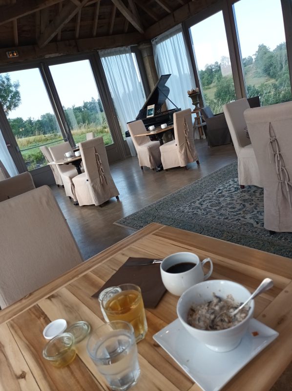 I could safely lock my bike inside one of the storehouses, which was sufficient even though there was not dedicated place for bicycles. You can see it on the background of this Instagram reel I posted in the morning, leaving the Relais des Trois Châteaux southwards for 180km (see my Strava activity).