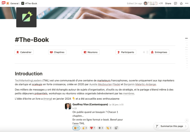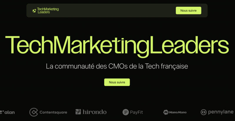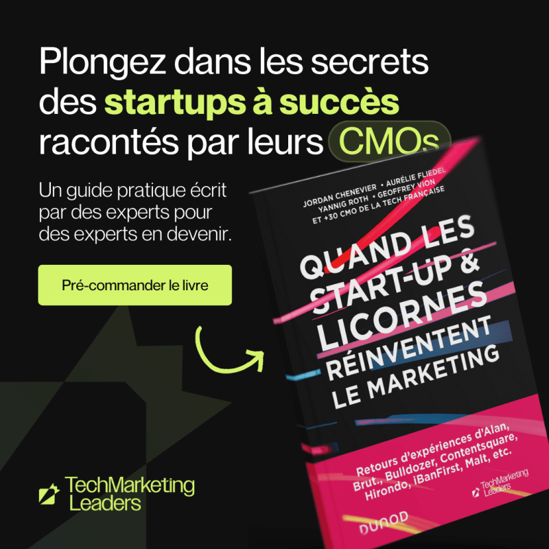 Nous sommes tous membres de TechMarketingLeaders, une communauté dont l’objectif principal est de partager et échanger nos expériences entre pairs. TechMarketingLeaders, organisé sous le statut d’association loi 1901 (à qui reviendront les royalties des vente du livre, d’ailleurs), regroupe près de 150 CMO et Part Time CMO de startups, scale-ups et licornes telles que Alan, Brut., Bulldozer, Contentsquare, Doctrine, iBanFirst, Figures, Hirondo, Le Collectionist, Livestorm, ManoMano, Memo Bank, Payfit, Pennylane, Pigment, Skillup, et bien d’autres. Le site web de l’asso :