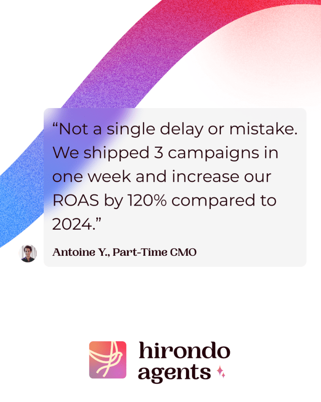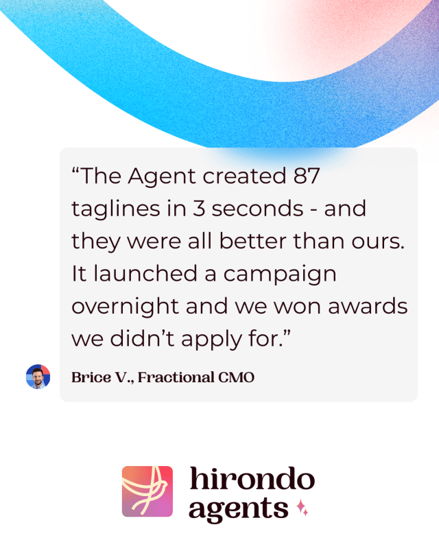 Early users of Hirondo Agents describe the experience as “unsettlingly effective.” From Series A startups to revenue-driven scale-ups, clients have reported productivity boosts of 30–50%, faster time-to-market, and noticeable improvements in campaign performance — all without sacrificing strategic depth or creative quality.