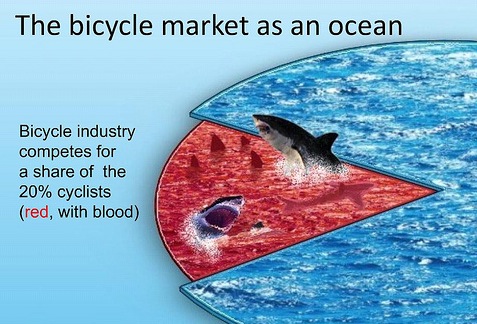 In a very interesting guest post on BicycleDesign.net, designer Mark Sanders basically talks about the cycling market as bunch of companies which sell high-priced bicycles to enthusiast cyclists (he calls them red oceans of enthusiasts). On the other hand, you have the mass-merchandisers selling very low-priced bikes in chain stores and supermarkets, targeting the mass of shoppers. Since these two approaches make companies compete on very “crowded” markets with low margins, we can indeed talk about red oceans that Kim & Mauborgne’s describe in their theory on business strategy, the Blue Ocean Strategy. In this theory, companies achieve growth by creating innovative ways to satisfy customers’ needs (differentiation), thus avoiding the high costs that incurr in highly competitive markets, and also driving up value for these customers. So is the cycling industry an unattractive industry ? According to Sanders, yes. I also think about an interview (in Institutional Investor of April 2005) of Martin Schwartz, CEO of Dorel Industries that I read when I got interested in Schwinn’s history ; he says that “bikes, it’s true, is not a great industry, but someone has to be the best, and Pacific (bike division of Dorel, ed) is the best by far“. Shimano seemed to having recognized that, and that’s where the industry-giant worked with IDEO, a global design consulting firm, to find a solution : Coasting.